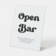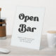 Stylish retro black & white wedding Open Bar Pedestal Sign