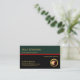 The upper green layer has your prestigious name and job title. Towards the right wall is a slogan option for you to publicise your services. Below the caption is a gold manpower logo you can use. The business name and contact details are at the lower left corner of the card.