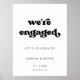 We are engaged: engagement party welcome sign. A retro chic theme: adopt this slightly vintage and stylish typographic design for your wedding stationery, with a classic black and white theme. Customisable text colours and backgrounds.