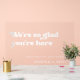 Stylish retro white So glad you're here Clear Acrylic Sign