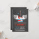 This stylish, trendy and cool baby shower invitation has a flaming red electric guitar with a pair of white wings behind it. The banner wrapped around the guitar reads "Rock a Bye Baby Shower" which is an amusing pun twist to a classic baby lullaby. Dark grey background has a light texture design to it. On the reverse is a classic vinyl record with musical notes and stars for decorations. This invitation is perfect for any rock and roll, music or rock star theme baby shower celebration! Personalise easily with your baby shower details.