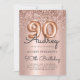 Stylish Rose Gold Glitter Balloon 90th Birthday Invitation