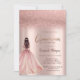 Elegant glitter dress on rose gold glitter ombre quinceañera party invitation.