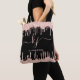 Sylish, Girly, Elegant, Light Rose Gold Glitter Drips 2 Monogram Script custom personalised name monogrammed tote bag on black. Featuring a modern luxury faux light pink rose gold glitter dripping frame, a large double hand lettered monogram script font with swashes (large size initials), and a serif type font name in light pink on black background. Easy to personalise it. Great feminine girly gift for girlfriend, mother, birthday, wedding, sweet 16 birthday party, bridal shower, and baby shower, business, professional work and for anyone who like pretty glamourous shiny things.