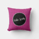 Trendy and stylishly modern throw pillows feature 2022 colour "rose violet" purple/pink with black dots pattern. Customise your own greeting in diagonal font on centre black circle.