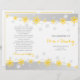 Stylish rows of yellow snowflakes and silver grey stars on white folded ceremony and party program that features lovely snowflakes in yellow and grey stars on white. A modern template design that makes an ideal choice for a contemporary winter December or Christmas wedding. To take a folded program fold it in half and choose the value paper type to have best results.