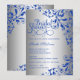 © Socialite Designs. An elegant royal blue and silver invitation with gorgeous corner decorative swirls ready to be personalised for your special event. Font style, text and paper type can be changed. Need HELP with customising or additional products with this design? Please do not hesitate to contact Socialite Designs.