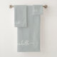 Stylish Sage Green Monogram Name Script Signature Bath Towel Set