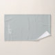 Elegant Chic Modern Monogram Name Signature Script Custom Personalised Sage Green Bath Towel Set. This delicate design featuring custom name in a cursive hand lettered swash tail font calligraphy (or typography) on sage green or dusty green colour background. Great stylish feminine housewarming gift, also for birthday, bridal shower, wedding, sweet 16 birthday party, bachelorette party, mother’s day, anniversary gift and for graduation party and It’s for the girl who likes stylish elegant things.