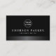 Modern add your own logo business cards with your name and title on the front and customisable template fields for name, title and contact information on the back. On the front is a grey satin gradient border.