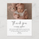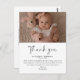 This beautifully designed card features a precious photo of your newborn in the top half, while the bottom showcases a thoughtful thank-you message, highlighted by "Thank You" in a sophisticated, elegant script.