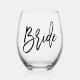 Stylish Script "Bride" Personalised Stemless Wine Glass