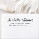 Simple, stylish modern black and white return address label with your names in off-black elegant handwritten script on a white background. Simply add your names and address. Exclusively designed for you by Happy Dolphin Studio!