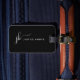 Modern chic minimalist script monogram and name design on colour editable black background, simple and elegant, great personalised luggage tags.