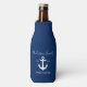 Stylish Calligraphy Script Nautical Lake House Anchor Family Name Navy Blue Bottle Cooler