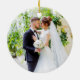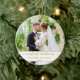 Elegant Stylish Trendy Script Our First Christmas Wedding Photo Gold and White Ornament