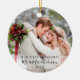 Elegant Stylish Trendy Script Our First Christmas Mr. and Mrs. Wedding Photo Ornament - 2 Photos, Front and Back