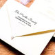 Modern return address stamp featuring your name in a stylish script and your address in simple typography. Save time and effort by effortlessly personalising your return address. Perfect for wedding invitations, party announcements, everyday correspondence and business mailings.