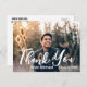Thank you postcard graduation, it can be a greeting card or congratulation card. This design features a custom photo of the grad and white script lettering text. Feel free to change the image with your best and thank you message at the back.