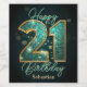 Stylish Shimmering Teal and Gold 21st Birthday Wine Label