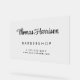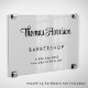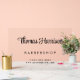 Custom clear acrylic sign for your business featuring your company or brand name in a stylish signature script and additional text below if desired in simple modern lettering.