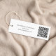 Elegant custom clothing, accessories, jewellery, boutique, etc., white label hang tag that features your name or brand showcase in a stylish signature script and additional text below if desired in simple modern lettering. On the back, add additional text and input a URL address to create a scannable QR code connected to your website, portfolio, social media profile, or any other platform that showcases your work and products, making it easy for customers to explore your brand.