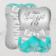 Stylish Silver Bow Teal Jewel Sweet Sixteen Invite