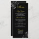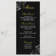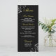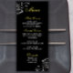 A stylish way to present your wedding day menu. With gold and silver grey text and a small ornate floral motif in the corners. It's a great choice for your elegant wedding. A script font has been used, however you can change this is you prefer. The text for the food choices is easy to read and in a light grey colour.
