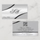 Stylish Silver Grey Curved Lines Monogram QR Code Business Card