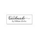 The lovely script design stamp saying " handmade" with personalised text details. Perfect handmade business stamp for your handmade items to label easily with this self inking rubber stamp..