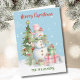 Stylish Snowman Lady Watercolor, cute whimsical christmas tree snow,personalised message family name,happy new year,fun feminine girly,retro charming
