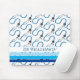 Stylish mouse pad printed with blue stethoscopes and fading blue stripes. There's a customisable text area to add your name or message