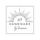 This elegant ´´handmade´´ rubber stamp features stylish sunrays with your initials in modern lettering, below is a ´´handmade´´ text followed by your name in a handwritten script. Create your own small business/hobby ´´handmade with love´´ stamper by clicking on the ´´Personalise´´ button.