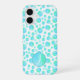 Stylish Teal Blue Bubbles Modern Custom Monogram iPhone 16 Case