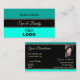 Stylish Teal Borders on Black with Logo and Photo Business Card