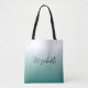 Create Your Own Custom Trendy Calligraphy Name Modern Elegant Cute Teal Blue Green Gradient Template Personalised Shopping Shoulder Tote Bag.