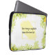 The sleeve is made of nice feeling material and seems very durable. I'm not sure how easy it'll be to clean, but the construction seems sound and the fabric is quick thick. I also like the double zipper. The printing is lovely and appears durable. The white on black contrast is nice, and the design very elegant.