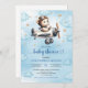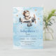 Stylish Teddy Bear Pilot Blue Gold Baby Shower Invitation