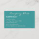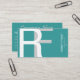 Monogrammed in huge lettering that fills the business card top to bottom and overlays the first name initial over the last name initial with a slight variance of colour, name and position title at a 90 degree angle on right edge of card - this has a textured overlay that will texture your monogram and background colour but leave the name and title clean - the back of the card leaves all of the text clean- CHANGE COLOR of the background by choosing Customise, use the edit drop down box for background colour - the one I have chosen here is a medium dark teal - the textured appearance will remain. NOTE: THIS card is NOT truly Textured, it is an artistically designed image to make it appear textured.