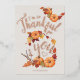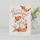 This Thanksgiving postcard features a cute autumn design with orange pumpkins, yellow, sage, and brown leaves, and sweet gratitude-filled words in high quality gold foil modern script calligraphy reading "I'm so thankful for you." The name on the front and the text on the back are customisable. It's a heartfelt and thoughtful way to show gratitude to your loved ones. Order yours now for a perfect fall or autumn-themed message of love and thanks!