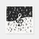 A stylish and eye-catching pattern of random musical notes in black and white with a large treble clef in the centre. The bottom of the design features black music notes on a white background with the top featuring white music notes on a black background. The large clef changes from black to white in colour half way.