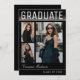 Trendy, modern and stylish graduation announcement cards, featuring design elements of modern text with handwriting signature script. Three graduate photos highlight the front of the card with "Graduate" accented in a sleek white gradient. The back of the card offers personalised text spaces for information about your graduation and future journey. White writing on regal black or easily customise the background to match your school's primary colour or any colour of your choice. Perfect for the high school, college and university grad.