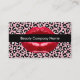Modern trendy makeup or beauty business cards with big red lipstick lips and cool leopard style pattern in the background and a banner that displays your company or personal name.