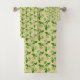 Stylish Tropical Green Leaves Pattern on Beige Bath Towel Set