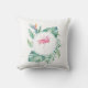 This small stylish throw pillow features my original hand painted watercolor pink flamingo framed with tropical leaves artwork in greens and blues on a white background. On the front is a unique flamingo pattern. A perfect tropical beach home decor, wedding or Christmas gift under $50. To see matching decor and holiday gifts visit VG Invites at www.zazzle.com/vg invites