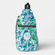 This stylish sling bag features an all-over pattern of tropical palm fronds in turquoise blue and green and features your monogram initial on the front. Three zippered compartments can easily store your keys, wallet, phone, camera, and plenty more. Wear it as a crossbody or over one shoulder, and attach the adjustable strap to a durable D-ring on the side of your choice. Made of polyester poplin, the bag is fully lined and measures 13.5" x 9". Exterior front pocket is 6.5" deep x 5.5" wide, interior zippered pocket is 4.5" x 4.5" with a compartment organiser, back zipper pocket is 6" wide x 5.5" deep". Comes with a rugged adjustable 27"-38" waist/crossbody strap with a plastic swivel connector. (Spot clean/dry clean only.) Create for yourself or give as a gift. MATCHING items in our travel collection.