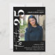 Celebrate in style with this minimal calligraphy script photo Graduation Party Invitation. Design features a traditional black background, that can be changed to any colour, a picture of the grad, the text 'twenty25 in calligraphy script and a modern party template that is easy to customise using the template provided. The reverse is decorated with mortar boards.