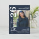 Celebrate in style with this minimal calligraphy script photo Graduation Party Invitation. Design features a navy blue background, that can be changed to any colour, a picture of the grad, the text 'twenty25 in calligraphy script and a modern party template that is easy to customise using the template provided. The reverse is decorated with mortar boards.