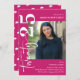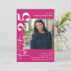 Celebrate in style with this minimal calligraphy script photo Graduation Party Invitation. Design features a hot pink background, that can be changed to any colour, a picture of the grad, the text 'twenty25 in calligraphy script and a modern party template that is easy to customise using the template provided. The reverse is decorated with mortar boards.