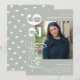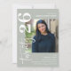 Celebrate in style with this minimal calligraphy script photo Graduation Party Invitation. Design features a sage green background, that can be changed to any colour, a picture of the grad, the text 'twenty25 in calligraphy script and a modern party template that is easy to customise using the template provided. The reverse is decorated with mortar boards.